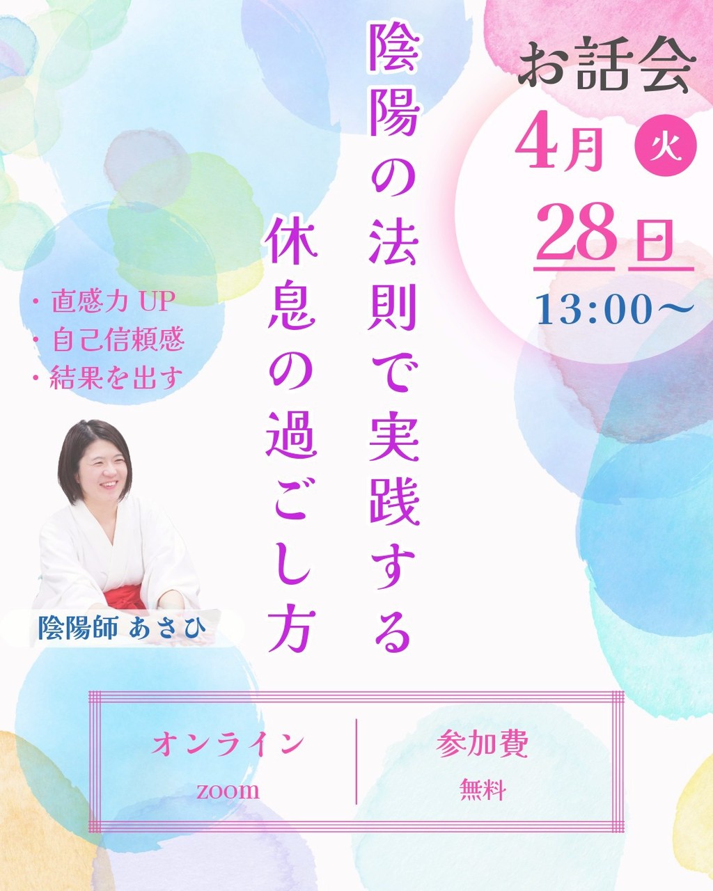 4/28にお話会『陰陽の法則で実践する 休息の過ごし方』を開催します